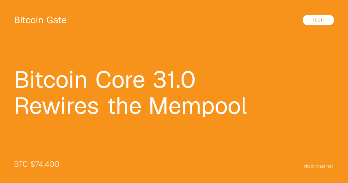 Bitcoin Core 31.0, now in its fourth release candidate as of April 11, changes the foundation. The mempool has been rebuilt from scratch around a concept called cluster mempool — and it brings a separate privacy upgrade that gives node operators a new way to broadcast transactions without exposing their IP address.
