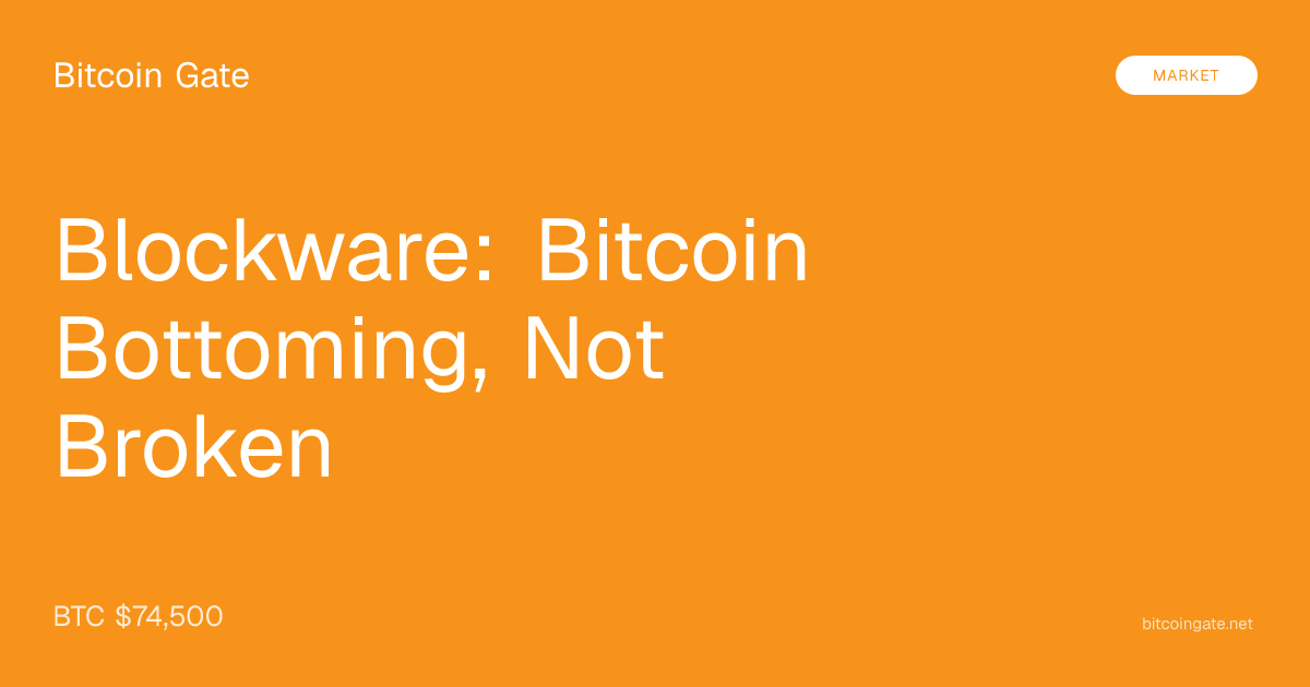 Blockware is not calling for an immediate rip higher. Their base case is that the price low is likely in, but the time low is not — meaning continued consolidation through Q2 is the most probable path, with range-bound trade absorbing the last marginal sellers before a trending move.