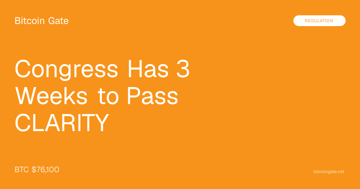 The CLARITY Act is the most consequential Bitcoin legislation ever to reach this stage in Congress. But "almost there" in Washington often means "not quite." Three weeks is extraordinarily tight for a bill with five remaining hurdles. Watch the week of May 11: if the Banking Committee markup doesn't happen before Memorial Day recess, Lummis's 2030 warning starts looking prophetic. The bill's content is ready. The question is whether the Senate's calendar is.