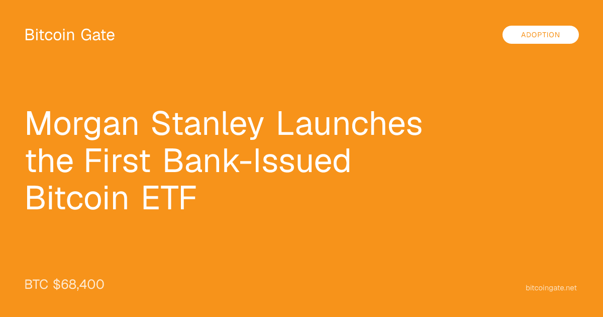 Morgan Stanley breaks that model. When MSBT (the Morgan Stanley Bitcoin Trust) begins trading on NYSE Arca on April 8, it will be the first spot Bitcoin ETF issued directly by a major U.S. commercial bank — an institution with its own captive distribution network of approximately 16,000 financial advisors managing $8 trillion in client assets.