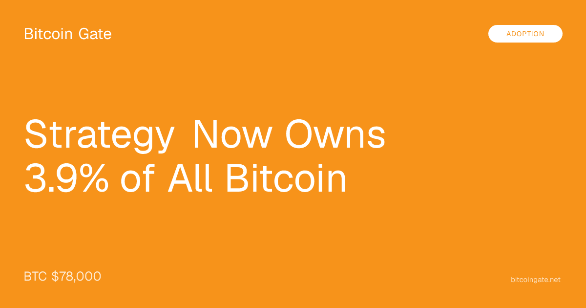 That is 3.9% of Bitcoin's 21 million hard cap. No other entity — corporate, sovereign, or institutional — comes close.