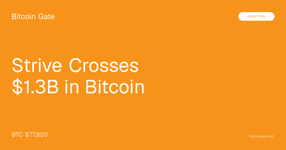 Strive, Inc. just bought 789 Bitcoin for $61.4 million at an average cost of roughly $77,890 per coin. The purchase pushes its total holdings to 14,557 BTC — worth approximately $1.3 billion at current prices — making the company the ninth-largest publicly traded corporate Bitcoin holder on the planet.