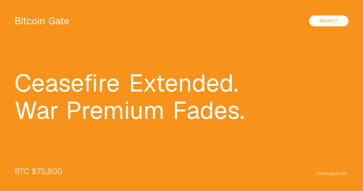Bitcoin, which had been compressing in a tight $75,000–$76,000 range all week on ceasefire anxiety, held steady above $75,800 on the news.